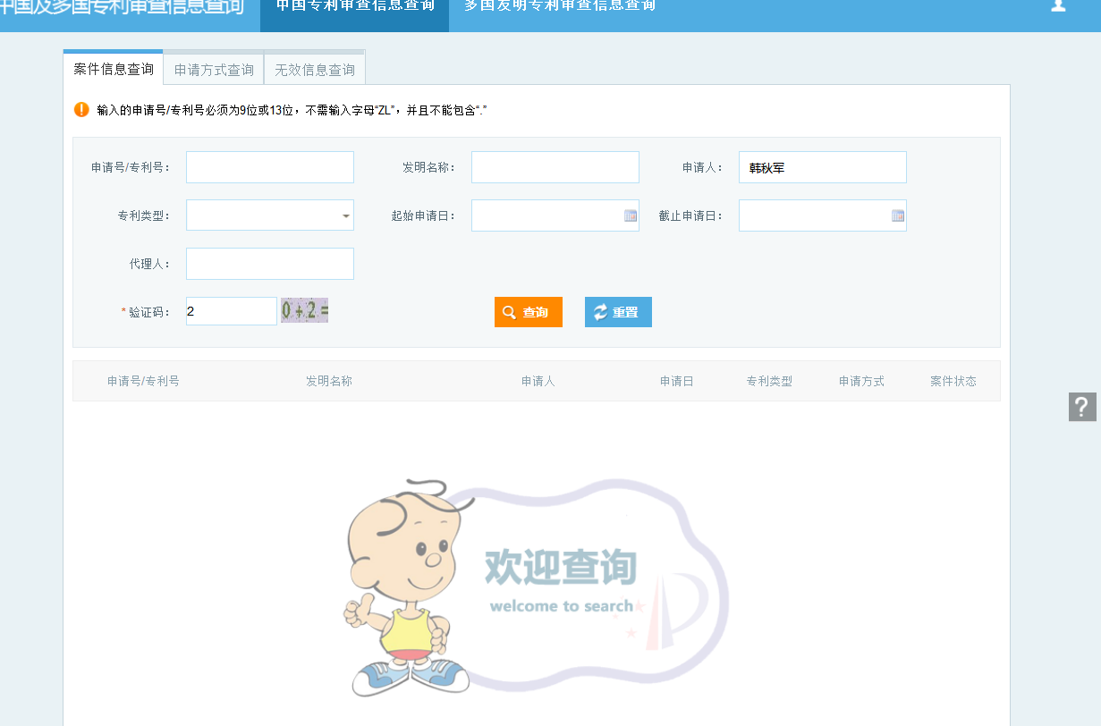 第四步,在申請(qǐng)人欄中輸入申請(qǐng)人(自然人或企業(yè))名稱,在驗(yàn)證碼欄中,根據(jù)后面出現(xiàn)的提示,把計(jì)算結(jié)果輸進(jìn)入。