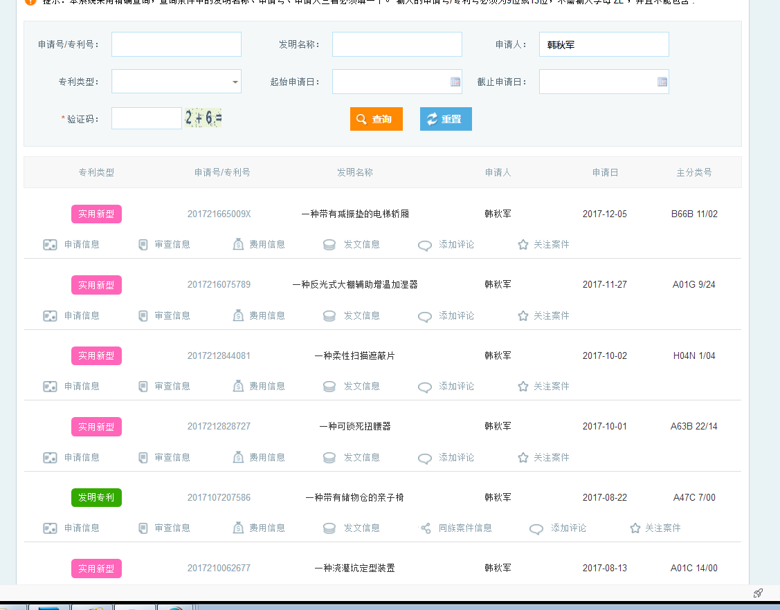 第五步,點(diǎn)擊“查詢”后,所有該申請(qǐng)人申請(qǐng)的專利,都會(huì)列示出來(lái)。