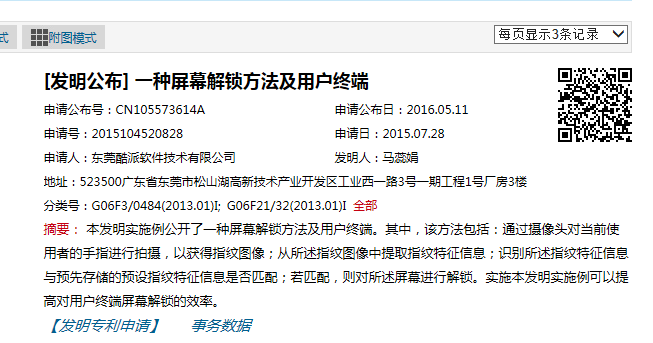 4、輸入查詢內(nèi)容出現(xiàn)??梢栽谄渥笙陆巧嫌袠?biāo)明“發(fā)明專利申請”