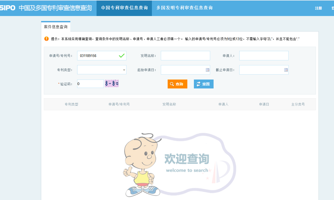 第四步,在“申請(qǐng)?zhí)?專利號(hào)”欄中,輸入專利號(hào)碼,點(diǎn)擊“查詢”。