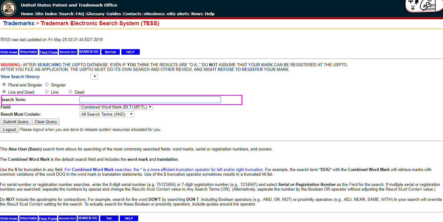 3.在“search term”這一欄里面輸入要查詢的商標名稱;