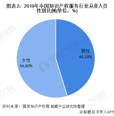 調(diào)查顯示,截至2019年底,參與調(diào)查的知識產(chǎn)權(quán)服務(wù)機(jī)構(gòu)的從業(yè)人員中,女性比例為54.8%,高于男性。