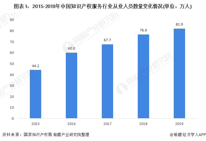 據(jù)統(tǒng)計(jì),“十三五”以來,我國從事知識產(chǎn)權(quán)服務(wù)的機(jī)構(gòu)新增約3萬家,知識產(chǎn)權(quán)服務(wù)業(yè)從業(yè)人員新增38萬人。截至2019年底,我國知識產(chǎn)權(quán)服務(wù)業(yè)從業(yè)人員約81.9萬人,較2018年底增長2.6%,吸納就業(yè)作用明顯。