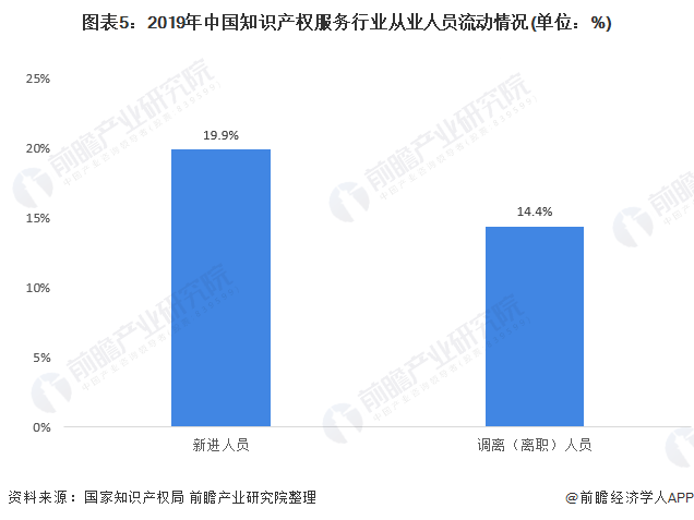 2020年12月,國家知識產(chǎn)權(quán)局發(fā)布《2020年全國知識產(chǎn)權(quán)服務(wù)業(yè)統(tǒng)計(jì)調(diào)查報(bào)告》,報(bào)告顯示,從從業(yè)人員性別、學(xué)歷、工齡上看,2019年,我國知識產(chǎn)權(quán)服務(wù)行業(yè)性別比例較為平衡,學(xué)歷普遍較高,有三分之一就業(yè)人員工齡均達(dá)5年以上。