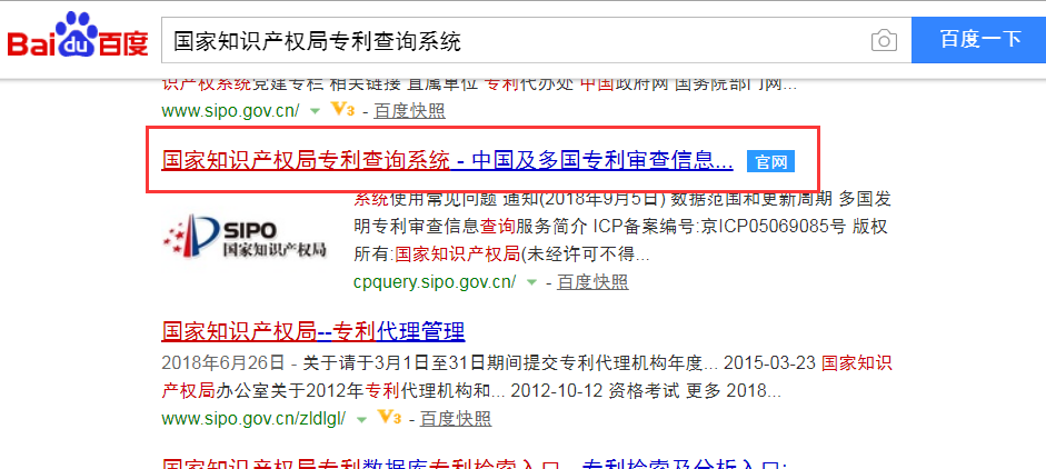 1、百度搜索【國家知識產(chǎn)權局專利查詢系統(tǒng)】。