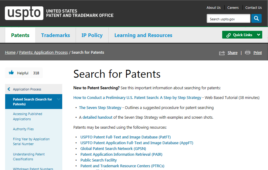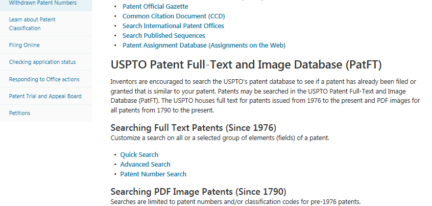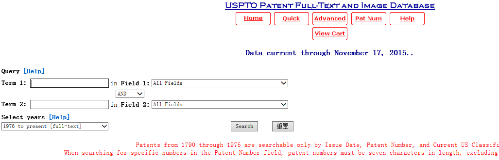 通過美國專利商標局網(wǎng)站進入專利檢索頁面(http://www.uspto.gov/patents-application-process/search-patents)