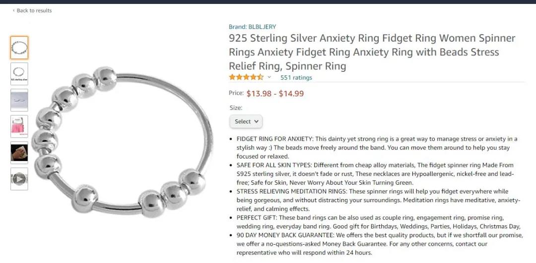 小信在網(wǎng)上找了幾款不同造型但很有特色的“解壓戒指”的熱賣款,提前為大家提前排雷,有亞馬遜上的產(chǎn)品,也有 TIKTOK 上博主獨立站上的熱賣款。